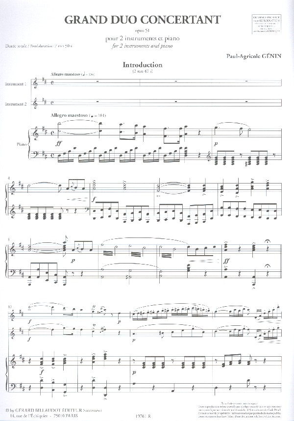 | Untertitel: | 2 flutes (ou fl/hautbois, fl/cl et fl/vl) et piano, partition et 5parties |