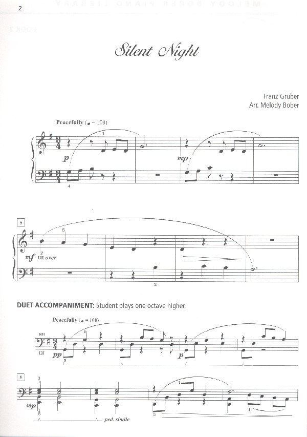 Melody Bober Piano Library for elementary Pianists Angels we have heard on High Go tell it on the Mountain Jolly old Saint Nicholas Silent Night Up on the Housetop We three Kings of Orient are We wish You a merry Christmas What Child is this