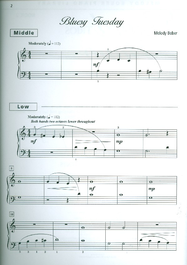 Melody Bober Piano Library Bluesy Tuesday Fiesta for three Amigos In a haunted Mansion Victory Day Parade