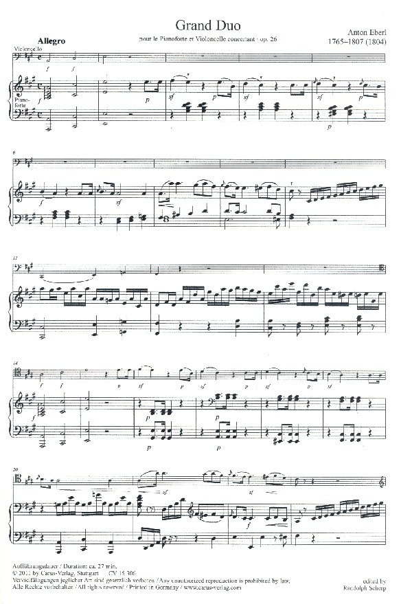 Produktinformationen "Grand duo op.26 für Violoncello und Klavier"