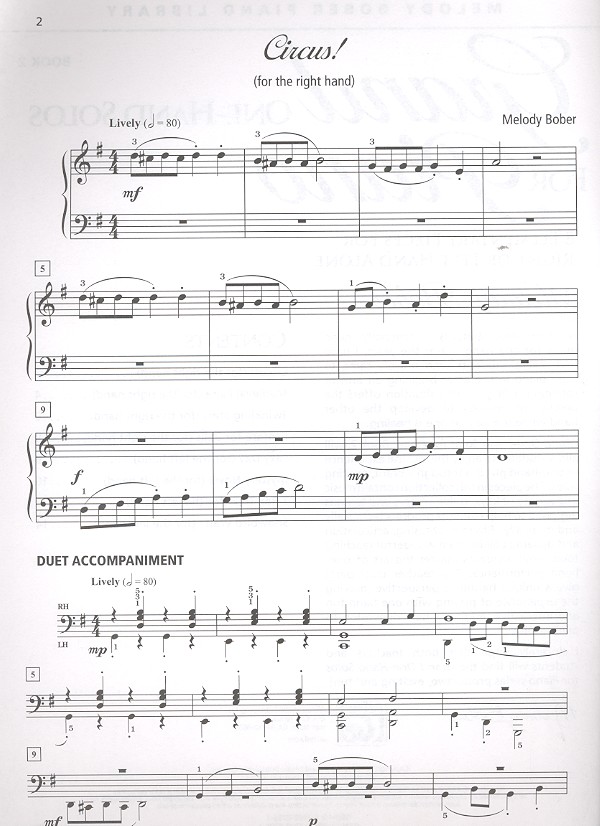 8 elementary Pieces for right or left Hand alone Circus Medieval Faire Twinkling Stars Fanfare for Bells Lazy Day Mystery Novel T-Rex Trek Snowbird Waltz