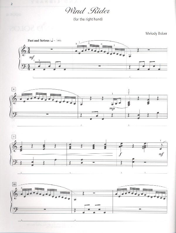 Melody Bober Piano Library for right or left Hand alone Wind rider Rosebud rag Jigs and reels Tango romantico Best of times On stormy seas Moonlit memory Scat Jammin'