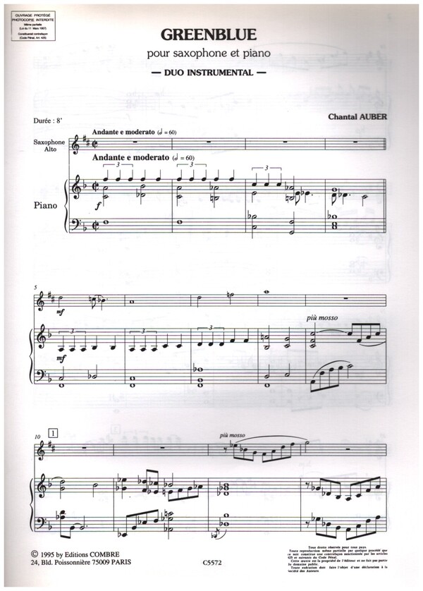 | Untertitel: | pour saxophone alto et piano |