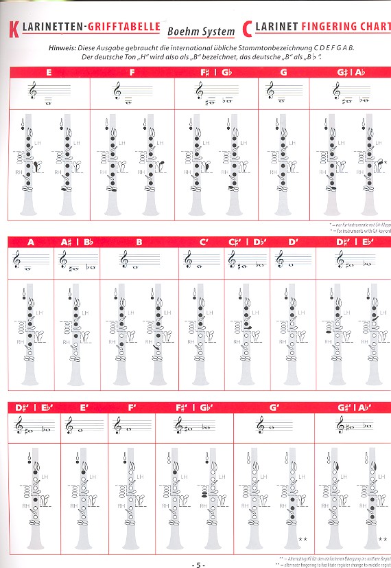 Grifftabelle Klarinette Böhm-System