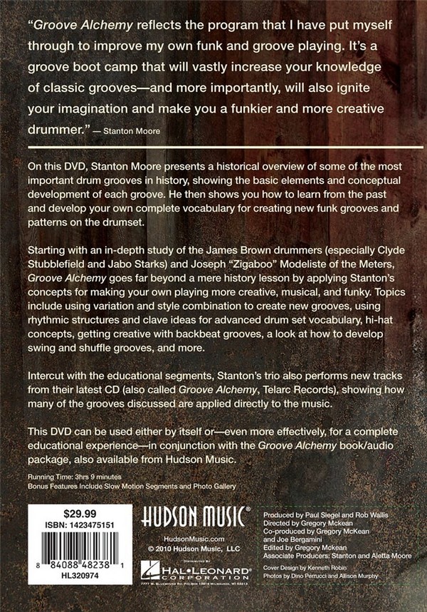 On this 3-hour DVD, Stanton presents a historical overview of some of the most important drum grooves in history, showing the basic elements and conceptual development of each groove. He then shows you how to learn from the pastand develop your own complete vocabulary for creating new funk grooves and patterns on the drumset. Topics include: using variation and style combination to create new grooves, using rhythmic structures and clave ideas foradvanced drum set vocabulary, hi-hat concepts, getting creative with backbeat grooves, a look at how to develop swing and shuffle grooves, and more. Intercut with the educational segments, Stanton's trio also performs new tracksfrom their latest CD, showing how many of the grooves discussed are applied directly to the music. Bonus features include slow-motion segments of key grooves.