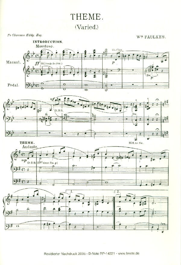 Solo Pieces for Organ Theme varied Rhapsodie Ouverture Berceuse Barcarole Nuptial Postlude