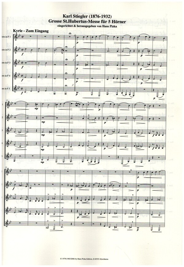 | Untertitel: | für 5 Hörner Partitur und Stimmen |