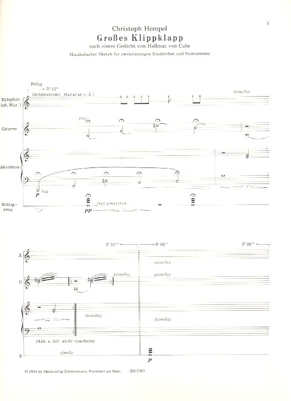 | Untertitel: | Sketch für zweistimmigen Kinderchor und Instrumente (4 Spieler) |