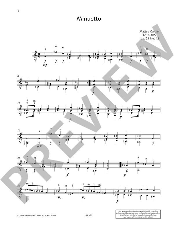 40 leichte bis mittelschwere Stücke aus 3 Jahrhunderten Dionisio Aguado: aus Nuevo Método 1843: Allegro moderato (Lección 35) Vals (Lección 23) Vals (Lección 24) Vals (Lección 25) Vals (Lección 26) Anonymus: Romanze Matteo Carcassi: Andante op. 21 No. 23 Andantino op. 21 No. 11 Minuetto op. 21 No. 12 Rondo op. 21 No. 22 Ferdinando Carulli: Andantino op. 241 No. 40 Rondo ohne Opuszahl No. 4 Rondo op. 241 No. 34 Vals op. 101 No. 3 Napoleon Coste: Barkarole op. 51 No. 1 Rondo op. 51 No. 6 José Ferrer y Esteve: Allegretto No. 7 aus 'Varios Ejercicios, Colección 3a' El Amable No. 14 aus 'Colección 8a de Ejercicios y preludios' Ejercicio No. 2 aus 'Colección 12a de Ejercicios' Ejercicio No. 9 aus 'Colección 10a de Ejercicios' Romance sans Paroles op. 23 Tango op. 50 No. 3 Daniel Fortea: Mi Favorita Mauro Giuliani: Allegretto op. 147 No. 9 Sonatine op. 71 No. 1 Pedro Antonio Iparraguirre: Camelia (Mazurka Nr. 2 aus 'El Ramillete') Dalia (Habanera Nr. 3 aus 'El Ramillete') Nardo (Vals Nr. 1 aus 'El Ramillete') Miguel Llobet: El Noi de la Mare El Testament d'Amelia Heinrich Marschner: Bagatelle op. 4 No. 6 Bagatelle op. 4 No. 8 Antoine Meissonnier: Sicilienne João Pernambuco: Sons de Carrilhões (Klang der Glocken) Fernando Sor: Andantino op. 32 No. 1 Mouvement de prière religieuse op. 31 No. 23 Vals op. 44 No. 24 Francisco Tárrega: Adelita (Mazurka) Lágrima (Preludio) Tango