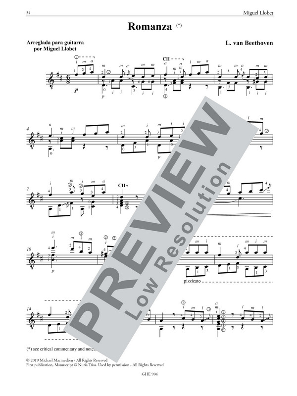 The definitive new Llobet Edition in 16 Volumes Grondona, Stefano, ed BACH: Preludio BWV999, Preludio de la Suite I para violoncello BWV1007 Preludio para la Suite III para violoncello BWV1009 Preludio para la Suite IV para violoncello BWV1010 Sarabanda de la Sonata II para violin solo BWV1002, Bourrée de la Sonata II para violin solo BWV1002 MOZART: Aria de Don Juan (Vedrai, carino) Andante de la Sonata III KV330 LUDWIG VAN BEETHOVEN: Sonata , Romanza, Largo de la Sonata no.4 op.7 Andante de la Sonata n.10 op.14 no.2 Allegretto de la Sonata no.14 op.27 no.2, Claro de Luna Fragmento de la Sonata no.23 op.57, Apasionata Fragmento de la Sonata no.30 op. 109 WAGNER: Fragmento de la ópera Parsifal