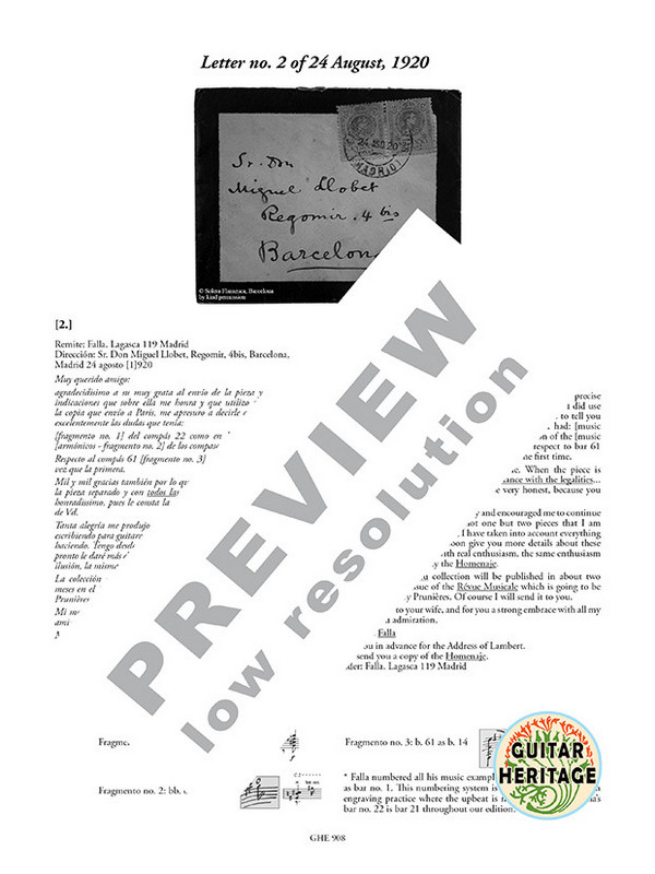 The definitive new Llobet Edition in 16 Volumes Manuel de Falla Homenaje pour 'Le tombeau de Claude Debussy' Cancion del fuego fatuo ro Romance del pescador This volume includes a free Audio CD of the three works in this volume plus 11 bonus tracks. Our CD offers wonderful performances of Llobets complete transcriptions of Fallas music transcribed for the solo guitar, guitar duo and voice & guitar. CD Interpreters: Stefano Grondona (guitar) Laura Mondiello (guitar) María José Montiel (mezzo-soprano) All works composed by Manuel de Falla and arrranged by Miguel Llobet CD contents: A Triptych for solo guitar 1. Homenaje pour le Tombeau de Debussy 2. Romance del Pescador (El Amor Brujo) 3. Canción del Fuego Fatuo (El Amor Brujo) Four previously unedited guitar duo transcriptions * 4. Cubana (Cuatro Piezas Españolas) 5. Danza del Molinero (El Sombrero) 6. Pantomina (El Amor Brujo) 7. Danza Ritual del Fuego (Amor Brujo) Siete Canciones Populares Españolas ** arranged by Llobet for voice and guitar 8. El paño moruno 9. Seguidilla murciana 10. Asturiana 11. Jota 12. Nana 13. Canción 14. Polo