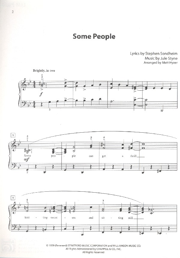 Sondheim, Stephen, lyrics Hyzer, Matt, arr. Broadway's Best All I need is the Girl Everything's coming up Roses Let me entertain You Little Lamb Small World Some People Together wherever we go You'll never get away from me