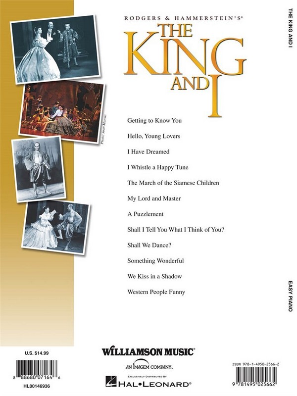 Hammerstein Oscar, lyrics Getting to know You Hello young Lovers I have dreamed I whistle a happy Tune The March of the siamese Children My Lord and Master A Puzzlement Shall I tell You what I think of You Shall we dance Something wonderful We kiss in