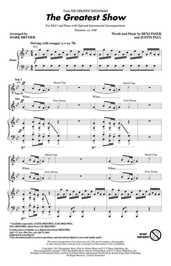 Brymer, Mark, arr. from the Musical / Film The greatest Showman