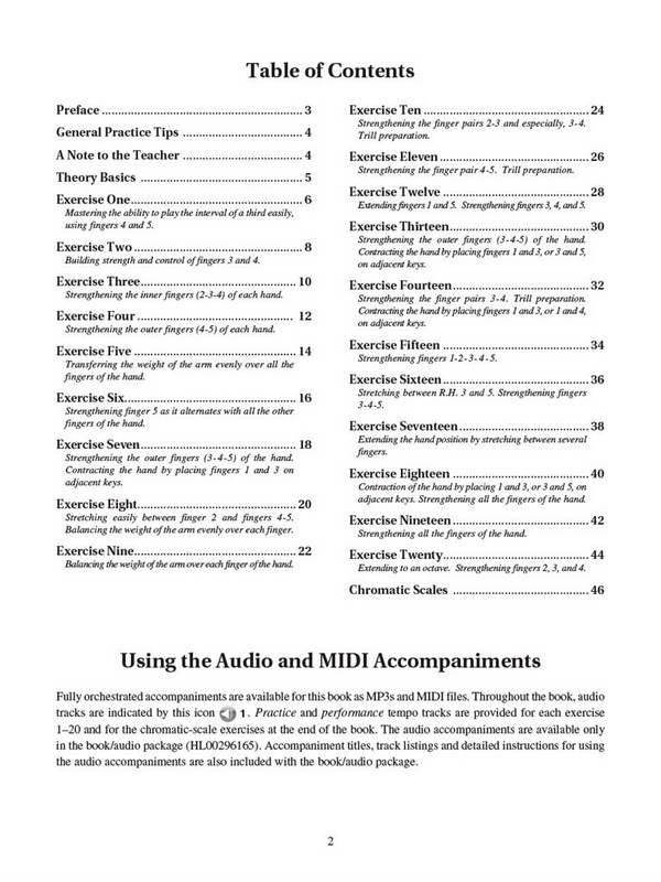 Drawing on the original G. Schirmer edition, this new G. Schirmer edition in the Hal Leonard Student Piano Library was created with today's developing pianist in mind. This fresh look at Hanon's popular studies includes innovative student worksheets, virtuoso variation suggestions, informative historical and biographical facts, chromatic-scale exercises, and fully orchestrated accompaniments for each exercise in a variety of styles. The audio is accessed online using the unique code inside each book and can be streamed or downloaded. The audio files include PLAYBACK+, a multi-functional audio player that allows you to slow down audio without changing pitch, set loop points, changekeys, and pan left or right.