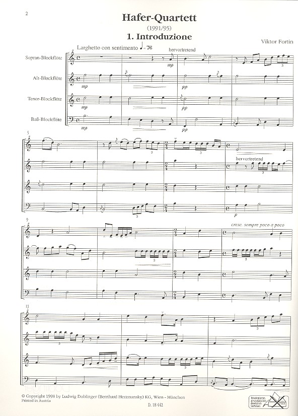 Hafer-Quartett für 4 Blockflöten