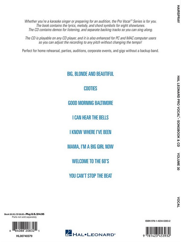 Better than Karaoke CD with unique Pitch-Changer Sing 8 Showtunes with a professional Band Big, blonde and beautiful Cooties Good Morning Baltimore I can hear the Bells I know where I've been Mama I'm a big Girl now Welcome to the 60's You can't stop the Beat