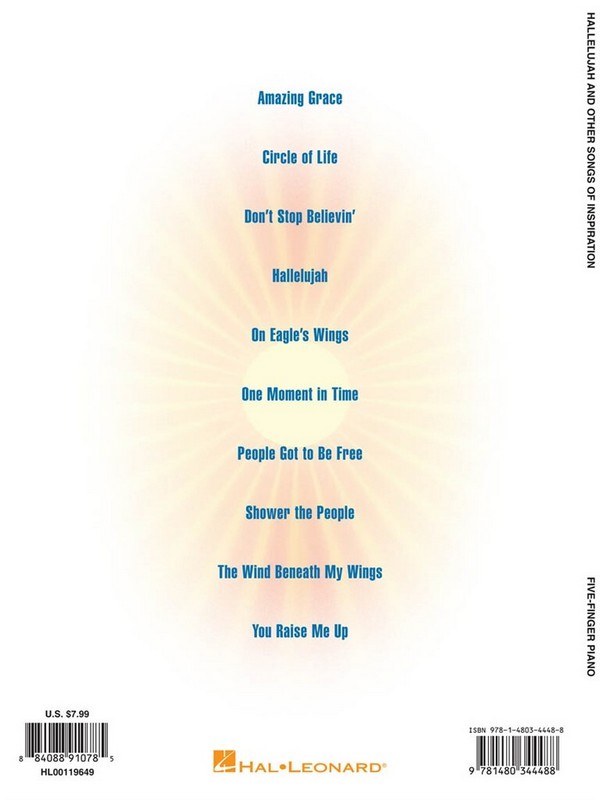 Amazing Grace Circle of Life Don't stop Believin Hallelujah On agle's Wings One Moment in Time people got to be free Shower the People The Wind beneath my Wings You raise me up