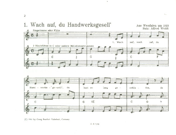 Sopranblockflöten Melodicas Wach auf du Handwerksgesell Mein Handwerk fällt mir schwer Die fleissigen Handwerker Maurerlied Es, es, es und es Der SchloSsergesell Die Leineweber Glück auf Glück auf Die Islandfischer