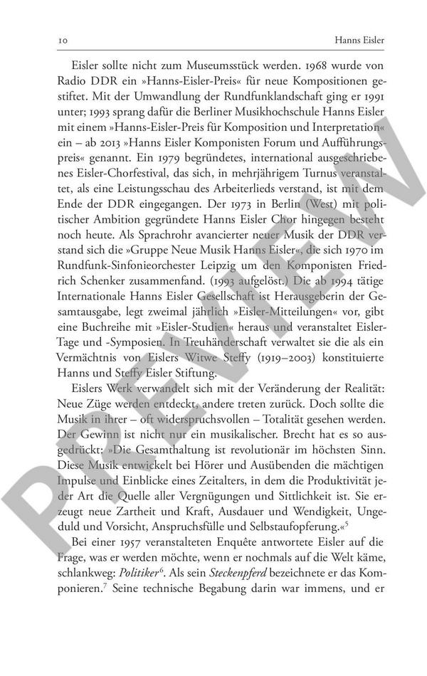 Unvermindert wird über Hanns Eisler diskutiert wie über nur wenige andere Komponisten des 20. Jahrhunderts. Er war und ist sowohl als Musiker als auch als Gesellschaftsbeobachter und -kritiker im Gespräch. Aufgrund jüdischer Herkunft und kommunistischer Gesinnung verbrachte er die 1930er und 1940er Jahre im Exil, danach fanden vor allem seine neuen Kompositionen großen Anklang. Bei einem seiner Befürworter handelte es sich um Bertolt Brecht, der besonders das Erscheinen seiner Lieder und Kantaten unterstützte. Der renommierte Eisler-Experte Fritz Hennenberg legt hier eine durchgesehene und vollständig aktualisierte Fassung seines Buchs vor, die sich nach wie vor durch eine angenehme und anschauliche Sprache bei hoher Qualität auszeichnet.