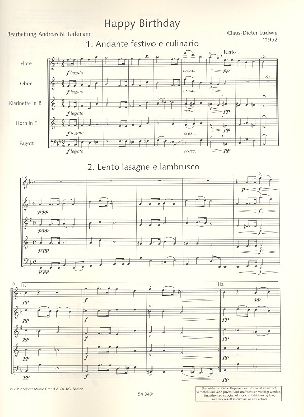 Tarkmann, Andreas N., arr. Ein Geburtstagsständchen in 5 Gängen