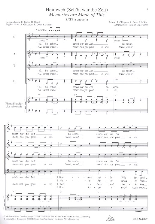 Dehr, R., Koautor Maierhofer, Lorenz, arr. Freddy Quinn, Interpret Memories are made of this Schön war die Zeit