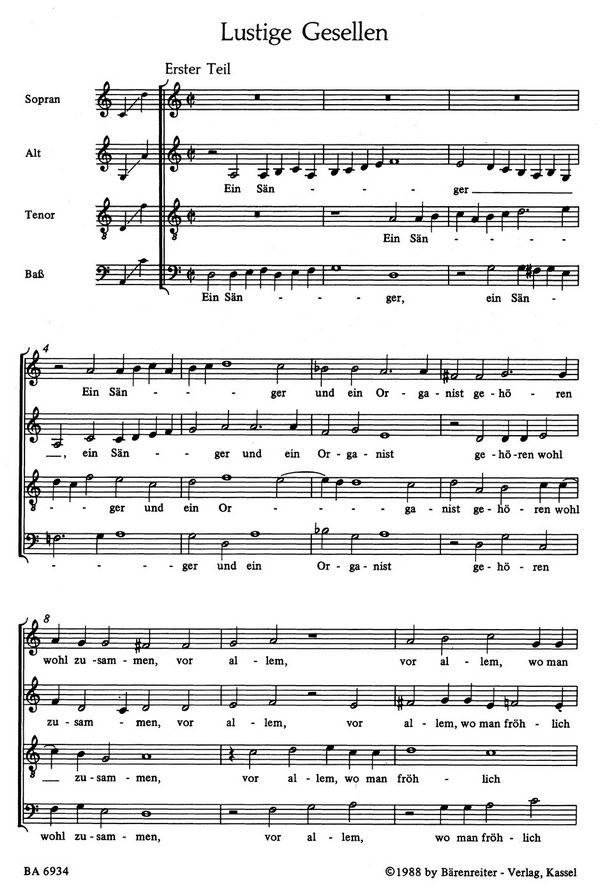 Boecker, Christine, ed Lustige Gesellen : Ein Sänger und ein Organist Guter Rat : Ein Fuhrmann der fortkommen will Brotlose Kunst : Dieweil umsonst jetzt alle Kunst Lob der Musik : Der Musik Feinde sind Banausen Trinklied : Holla heut wolln wir fröhlich sein Die Elster : Ein Elster dünkt sich stolz und klug Warnung : Ein Verräter und ein Suppenfresser