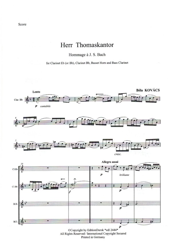 | Untertitel: | für Klarinette in Es, Klarinette in B, Bassetthorn und Bassklarinette Partitur und Stimmen |