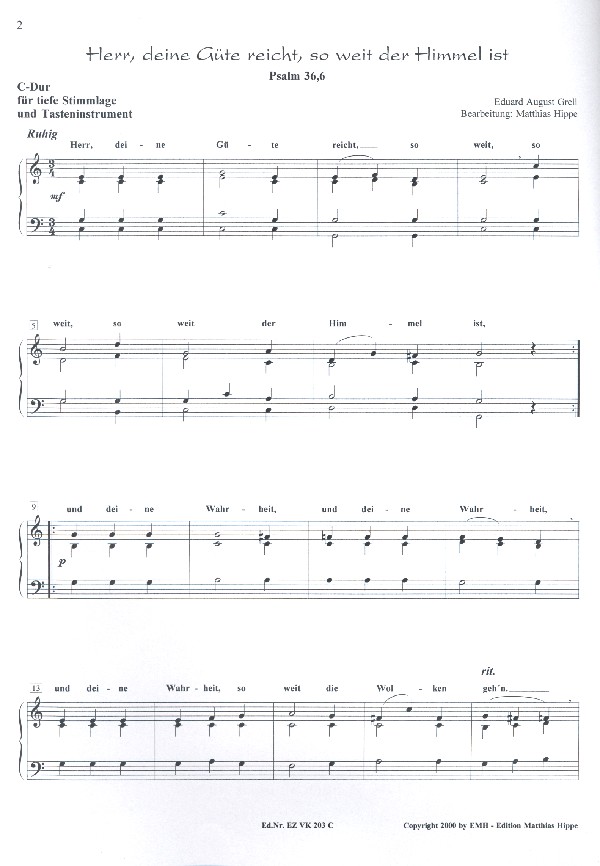 | Untertitel: | für Gesang (tief) und Tasteninstrument (besteht aus 2 Stimmen) |