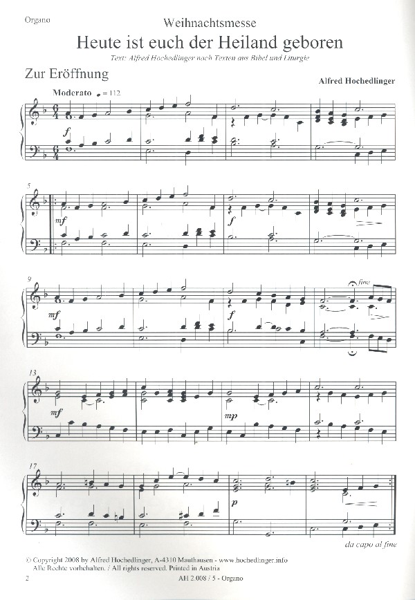 | Untertitel: | für gem Chor und Orgel (Instrumente ad lib) Orgel |