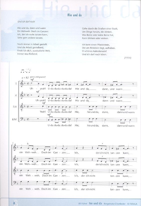 10 Ringelnatz-Chorlieder Ehni, Jörg, Vorwort Hie und Da Lebensabschnitt Und glaubte es doch überwunden Ich habe dich so lieb Blues Morgenwonne Wo ist der Mensch den ... Fluidum Wimm bamm bumm Schroffer Abbruch