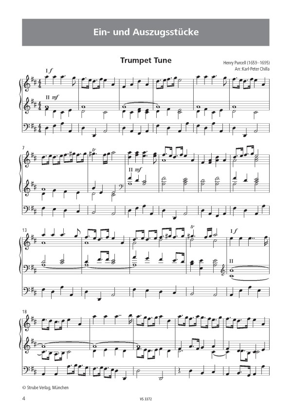 Leicht spielbare Ein- und Auszugsstücke, Meditationen und Intermezzi Ave Maria (Gounod) Air (Bach) Air (Händel) Allegro maestro e vivace (Mendelssohn) Allegro moderato maestoso (Mendelssohn) Ankunft der Königin von Saba (Händel) Badinerie (Bach) Brautchor (Wagner) Cantilene nuptiale (Dubois) Gavotte (Wesley) Grand choeur triomphal (Guilmant) Hochzeitsmarsch (Mendelssohn) Hornpipe (Händel) Jesus bleibet meine Freude (Bach) Marche de procession (Guilmant) Marche pontificale (Lemmens) March (Smart) Ouverture (Lefébure-Wély) Panis angelicus (Franck) Präludium C-Dur (Bach) Präludium g-Moll (Bach) Summertime (Gershwin) 'S wonderful (Gershwin) To a wild Rose (MacDowell) Trumpet Tune (Purcell)