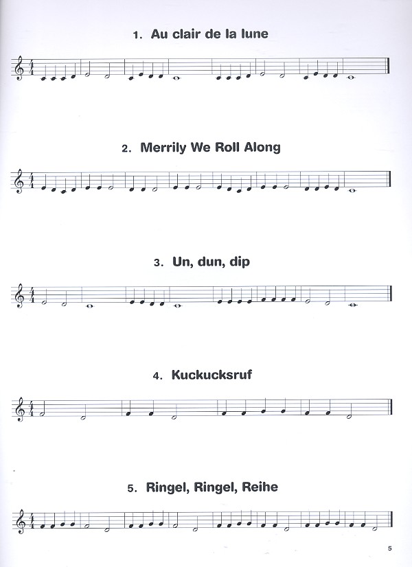 OLDENKAMP, M, KOAUTOR ALLE MEINE ENTCHEN ALLE VOEGEL SIND SCHON DA AMAZING GRACE AU CLAIR DE LA LUNE AUF AUF ZUM FROEHLICHEN JAGEN AURA LEE BRUDER JAKOB CAMPTOWN RACES DER GELBE KORB DER HAHN IST TOT DER KUCKUCK UND DER ESEL DER SILBERSCHATZ DIE BLUEMELEIN SIE SCHLAFEN DONA NOBIS PACEM DREI MAL DREI IST NEUNE EIN HASE SASS IM TIEFEN TAL EIN KLEINER MATROSE ESIK ESOE FOR HE'S A JOLLY GOOD FELLOW FUCHS DU HAST DIE GANS GESTOHLEN GOODNIGHT LADIES GRANDFATHER'S CLOCK GUTEN ABEND GUT NACHT GUTER MOND DU GEHST SO STILLE HAENSCHEN KLEIN HAENSEL UND GRETEL HIMMEL UND ERDE MUESSEN VERGEHN HOME ON THE RANGE ICH BIN EIN MUSIKANTE IM MAERZEN DER BAUER IM SAEGEWERK IST EIN MANN IN BRUNNEN G'FALLEN KOMMT EIN VOGEL GEFLOGEN KOMMT UND LASST UNS FROEHLICH TANZEN KUCKUCK KUCKUCK KUCKUCKSRUF LANG LANG IST'S HER MERRILY WE ROLL ALONG MILITAERMARSCH MORNING HAS BROKEN NEHMT ABSCHIED BRUEDER NOBODY KNOWS THE TROUBLE OLD MC DONALD OMAS LIEBLING RINGEL RINGEL REIHE SANTA LUCIA SHALOM CHAVERIM SKIP TO MY LOU SONATINA SUMM SUMM SUMM THIS OLD MAN TIRITOMBA TOM DOOLEY TSCHECHISCHES TANZLIED UN DUN DIP WHEN ISRAEL WAS IN EGYPT'S LAND WINTER ADE ALLE JAHRE WIEDER IHR KINDERLEIN KOMMET JINGLE BELLS KLING GLOECKCHEN MORGEN KOMMT DER WEIHNACHTSMANN SCHNEEFLOECKCHENWWE WISH YOU A MERRY CHRISTMAS