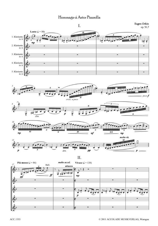 Hommage à Astor Piazzolla für 5 Klarinetten