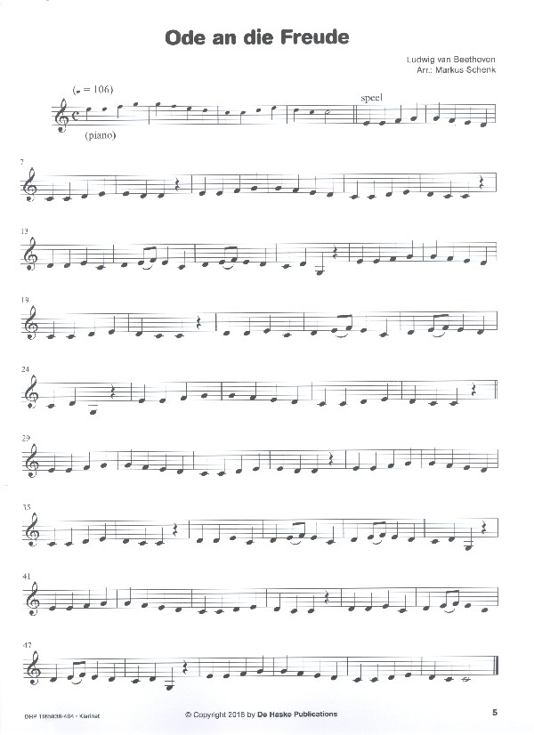 Schenk, Markus, arr. Hören, lesen, spielen Hymne à la joie (Ludwig van Beethoven) O Haupt voll Blut und Wunden (Johann Sebastian Bach) Marche du prince de Danemark (Jeremiah Clarke) La Mourisque (Tielman Susato) A lieta vita (Giovanni Giacomo Gastoldi) La Truite (Franz Schubert) Largo (Antonín Dvorák) Valse - La Belle au bois dormant (Pjotr I. Tchaikovsky) Marche pour la cérémonie des Turcs (Jean-Baptiste Lully) Prélude (Marc-Antoine Charpentier) Symphonie La Surprise (Joseph Haydn) Le Printemps (Antonio Vivaldi) Valse, op.39 (Johannes Brahms) Alla Hornpipe (Georg Friedrich Händel) Sinfonie Nr.40 (Wolfgang Amadeus Mozart) Menuet (Luigi Boccherini)