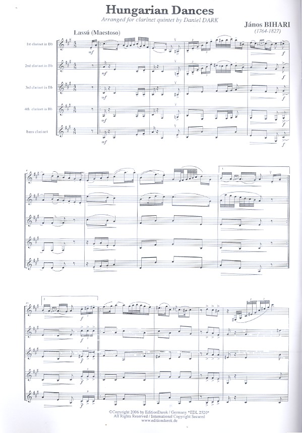 Dark, Daniel, arr. Clarinet Quintet