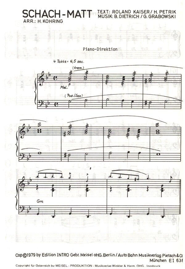 SCHACH-MATT IM DUNKEL DER NACHT KLINKHAMMER, S., ARR. KOHRING H., ARR. (SCHACH-MATT)