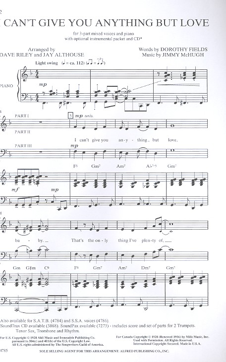 Alfred Archive Edition Fields, Dorothy, lyrics Riley, Dave, arr. Althouse, Jay, arr.