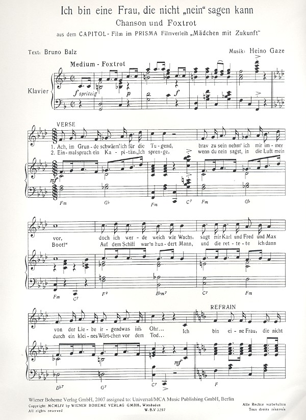 Balz, Bruno, Text aus dem Film Mädchen mit Zukunft