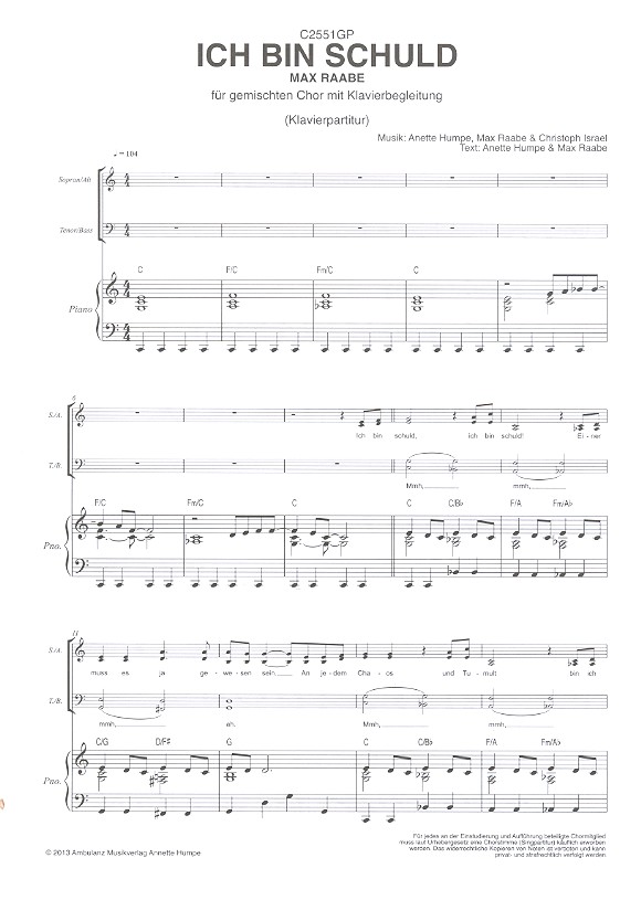 | Untertitel: | für gem Chor und Klavier Partitur und 10 Chorpartituren |