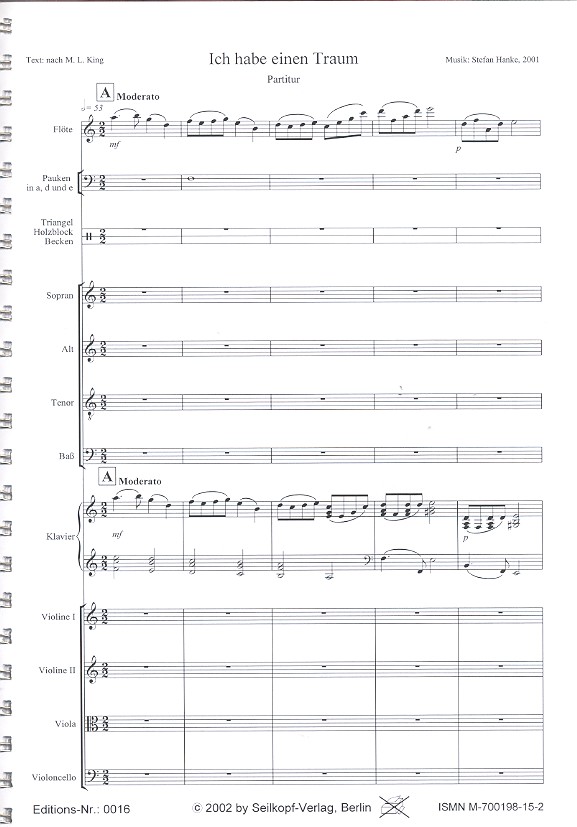| Untertitel: | Flöte, Pauken, 2 Violinen, Viola, Violoncello und Klavier. Partitur |