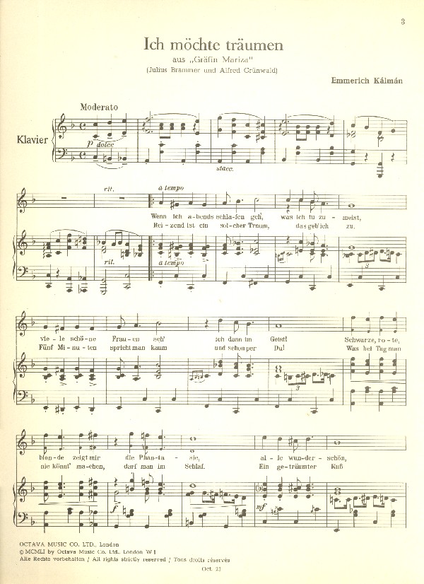 | Untertitel: | aus Gräfin Mariza für Gesang und Klavier |