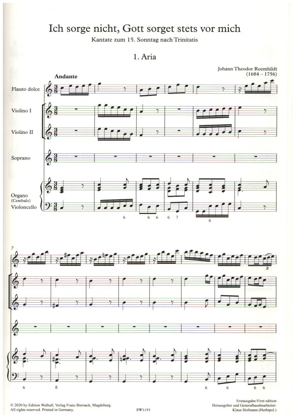 | Untertitel: | für Sopran, Altblockflöte (Querflöte), 2 Violinen und Generalbass Partitur und Stimmen |
