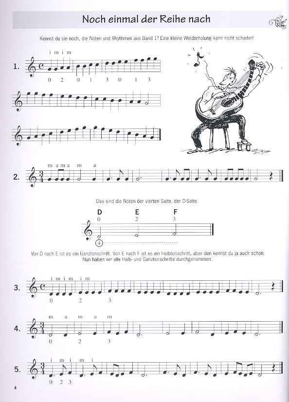 Schule Ich spiele Gitarre! ist eine neuartige Schule für Anfänger auf der Gitarre ab neun oder zehn Jahren. Jeder Band enthält viele bekannte Lieder verschiedener Musikrichtungen, wie z.B. Klassik, Pop, Blues oder Folk. Neu ist, dass in Ich spiele Gitarre! neben dem Spielen von Melodien auch besonderer Wert auf das Erlernen und Spielen von Akkorden gelegt wird. Schritt für Schritt wird der Gitarrenschüler in die Geheimnisse des Gitarrenspiels eingeweiht. Jede Menge Übungsstücke, lustige Spiele, Rätsel und Gehörübungen sorgen für viel Abwechslung. Selbst Improvisieren und Komponieren sind in den fünf Bänden dieser Schule ein Thema. Schon nach wenigen Wochen werden auchIhre Schüler stolz sagen können: Ich spiele Gitarre!Band 2 setzt die Gitarrenschule mit folgenden Themen fort: Wiederholung, Akkorde spielen, Improvisieren, Improvisieren mit drei und vier Tönen, Schwungvolle Haltebögen, Ganz oder halb?, Tonleitern, Halb- und Ganztonschritte in Dur, Dur und Moll, Eine besondere Seite für besondere Anlässe (Geburtstagslieder)