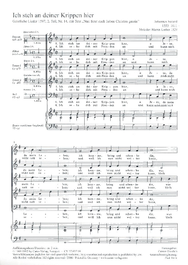 Produktinformationen "Ich steh an deiner Krippen hier"