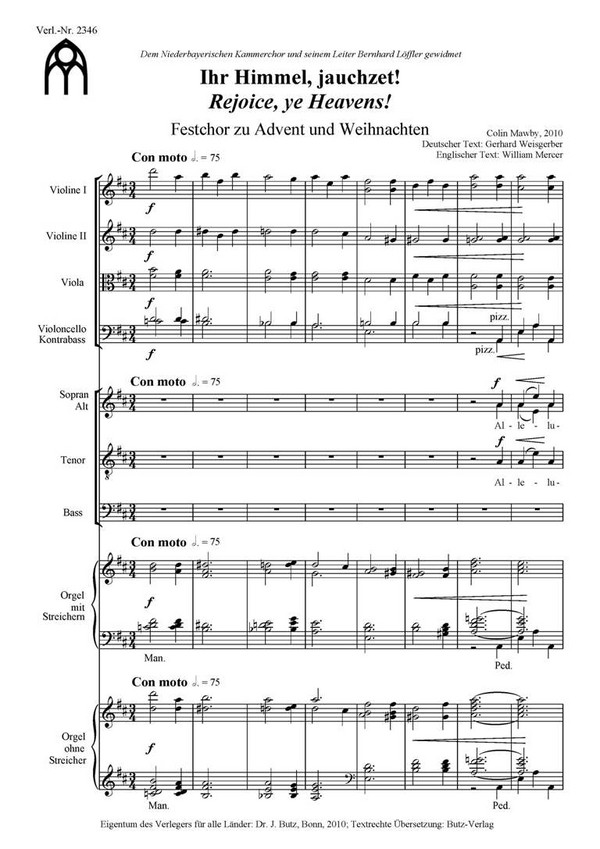 | Untertitel: | für gem Chor und Orgel (Streicher ad lib) Partitur (dt/en) |