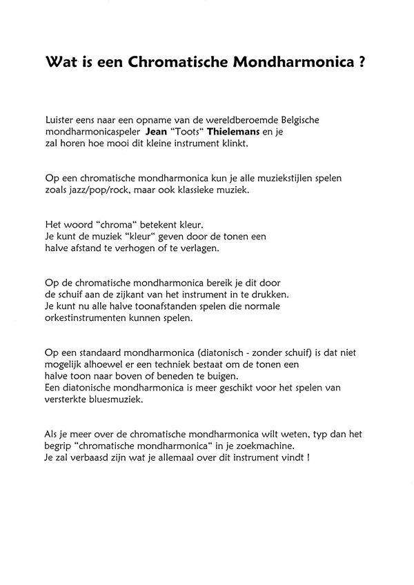 Voor de chromatische mondharmonica In de toonsoort C Met 12 toonkanalen