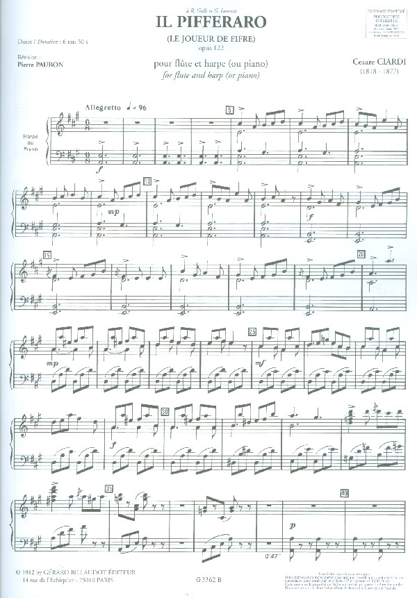 | Untertitel: | pour flûte et harpe ou piano |