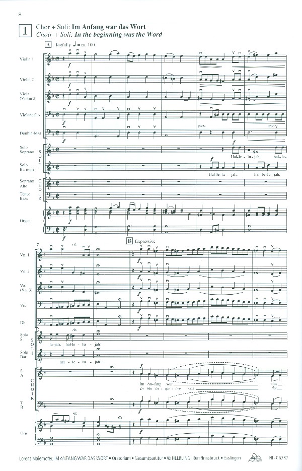 | Untertitel: | für Soli, gem Chor und Streichorchester (Orgel) Partitur (dt/en) |