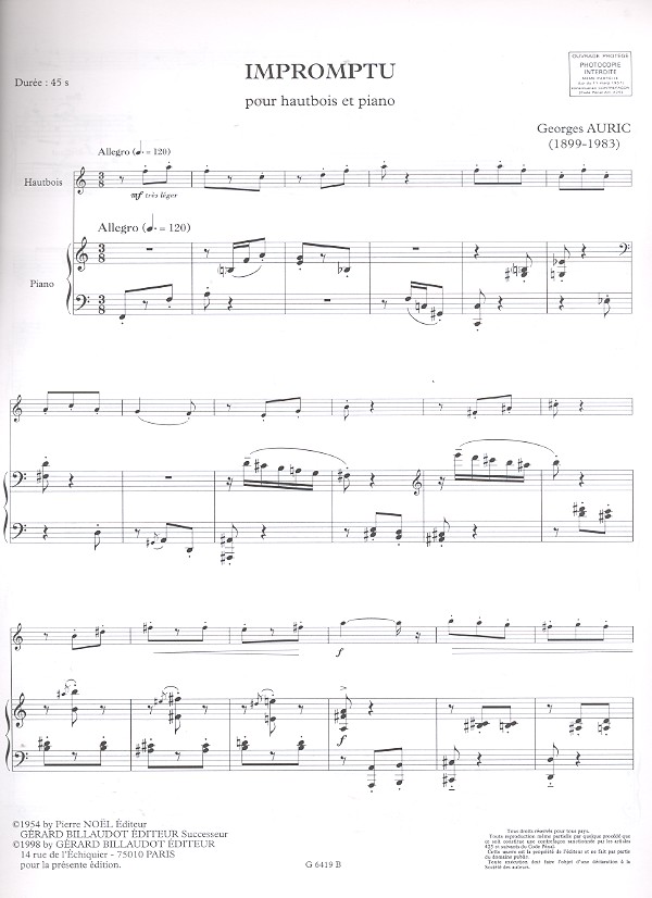 | Untertitel: | pour hautbois et piano |